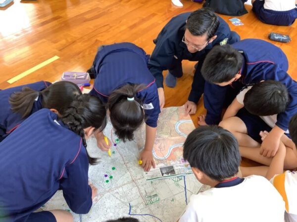 5年生10/22 5年生 図上訓練「水害で危険な所を見つけよう!」