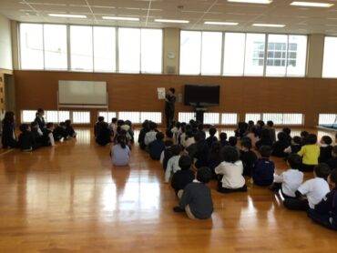 2025.4.11 2年生 全校生 4/10【2年生】 初めての学年集会 2年生全体で集まり、担任の自己紹介や学年で目指す「スーパー2年生」について確認しました。姿勢よく話を聞き、スーパー2年生を目指す気持ちを高めました。