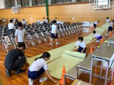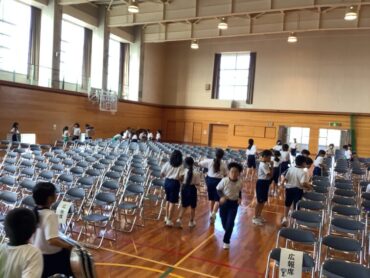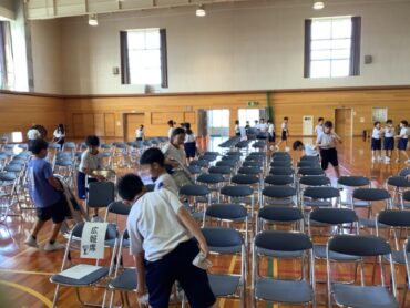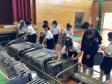 学習発表会&感謝の集いに向けて、5年生が会場設営を行いました。500脚程のパイプ椅子を縦横きれいに揃えて並べたり、会場の掃除をしたりしてくれました。先生たちが声をかけなくても、自分たちで仕事を見つけて働く姿は、高学年らしくとても頼もしかったです!
