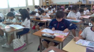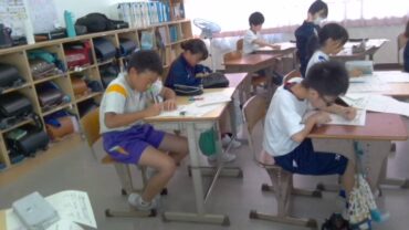 1組は、算数科「わり算の筆算」テストに向けて復習をしています。2組は、国語科「言葉を分類しよう」の学習で、「物や事を表す言葉」と「動きを表す言葉」、「様子を表す言葉」の3つに分けてみました。3組は、国語科「ごんぎつね」の学習で、ごんの心情を考えました。