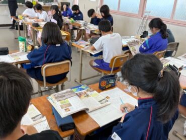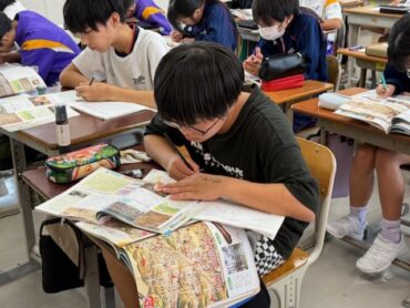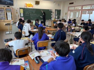 6年生は、社会科で室町時代の文化について学習しています。金閣や銀閣の建物のちがいを比べながら、足利義満や足利義政の時代に広がった文化の特徴を調べています。また、「わび・さび」の心がどんなところに表れているのかにも目を向け、日本の伝統的な美しさについて考えています。