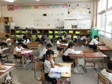 2025.10.8 10/8 1年生「できることが増えています!」 小学校に入学して半年が過ぎました。1年生も自分でできることが増えてきています。学習専用端末も一人で起動できたり、落ち着いてテストを受けたり成長を感じます。まだまだできることを増やして頑張る1年生です。