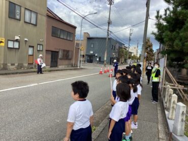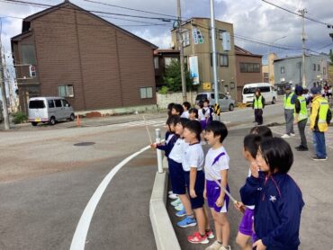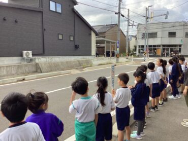2025.10.10 10/9 3年生 人波作戦 横田、西条、川原3校区の交通安全協会、母の会、横田交番の方々のご協力のもと、車の運転手に向かって交通安全の大切さを呼びかけました。自分たちもこれを機に、交通ルールの大切さについて学ぶ機会となりました。