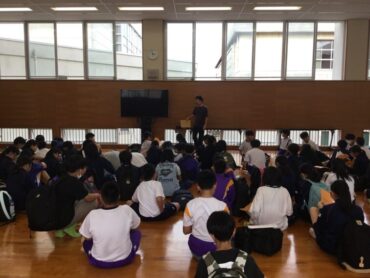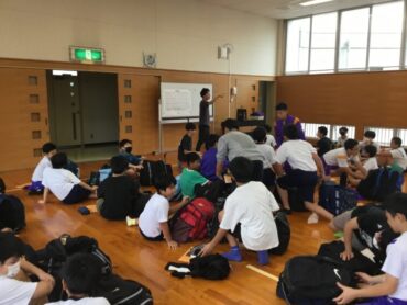 6年生は、来週の宿泊学習に向けて立山事前学習と荷物点検を行いました。事前学習では、特別ゲスト「立山のぼろう君」をお呼びし、立山の歴史や自然などについて学びました。