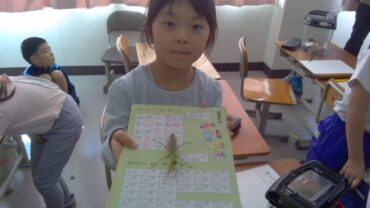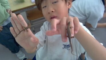 2025.10.16 10/15 1年生「虫とどんどんなかよくなっています」 虫と楽しく遊ぶことで、虫が苦手だった子たちも触れるようになってきました。手に乗せたり、服に乗せてあげたりしています。虫への愛情が大きくなっています。