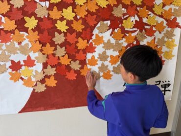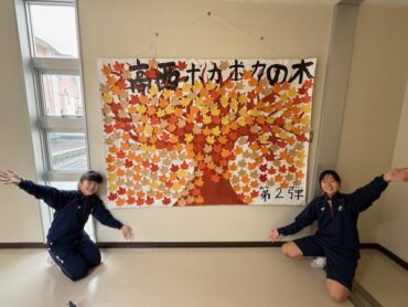2025.10.22 委員会 10/21 高西「ポカポカの木」が紅葉でいっぱいになりました🍁 高西ポカポカの木があったか言葉で溢れています。友達へのやさしい言葉がたくさん集まり、見ているだけで心があたたかくなります。