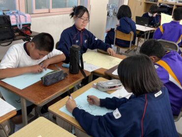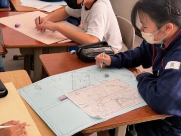 2025.11.5 NEW 11/5 6年生 図画工作科 不思議なとびらのむこうには 6年生、図画工作科の様子です。もしも身近なものがどこかにつながるとびらだったら・・・とびらの向こうに広がる世界を想像しながら描いています。どんな作品が仕上がるか、わくわくしますね。
