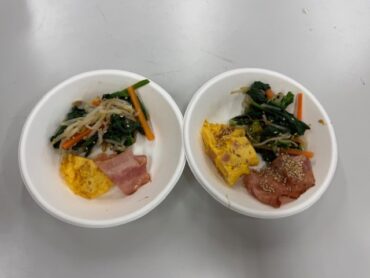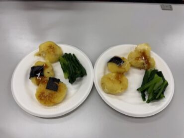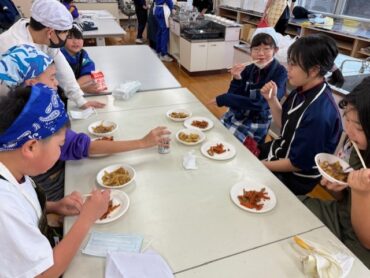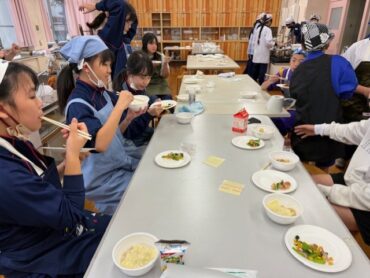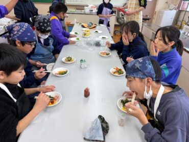 家庭科の学習では、協力して1食分の主菜と副菜づくりに取り組みました。グループで役割をわけ、手順を相談しながら調理を進めることで、安全に気を付けて作業することや、バランスのよい食事づくりの大切さを学びました。完成した料理は、どの班も彩りよく、味もばっちり!「自分たちで作った料理はおいしく感じる」、「みんなで協力して作れてよかった」など、子供たちの声が聞こえてきました。