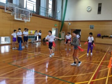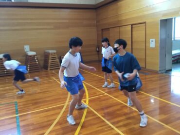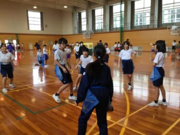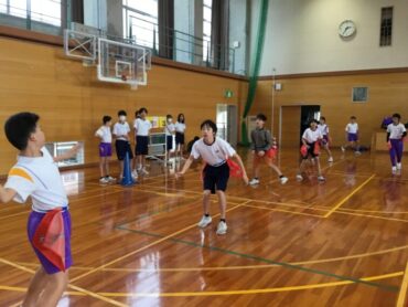 6年生は、学年で「フラッグフットボール」を行いました。それぞれのチームが作戦を考え、試合に挑んでいました。