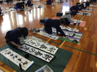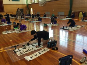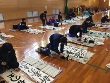 書初めの練習が始まりました。今年度は、「新春の志」です。1年ぶりの書初め練習でしたが、お手本をじっくりと見て書いていました。