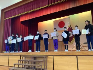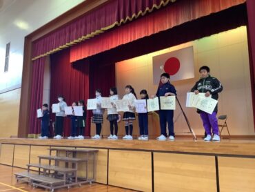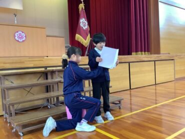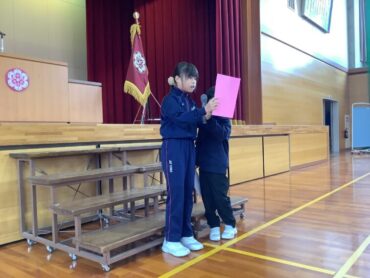 次に、2年生と4年生の児童が、2学期に頑張ったことを発表しました。あいさつボランティアや持久走記録会の頑張りを発表してくれました。冬休みや3学期も目当てをもって過ごせるといいですね。