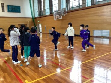2026.1.14 1/14 4年生 長縄跳びに挑戦 体育科の学習では、長縄跳び練習を行いました。各クラス3チームに分かれて意欲的に練習に取り組んでいます。同じチームの仲間に声をかけたり、跳ぶ順番を考えたりしてたくさん跳べるようにがんばっています。