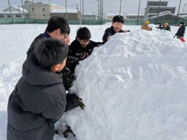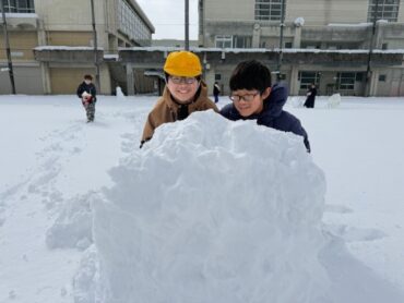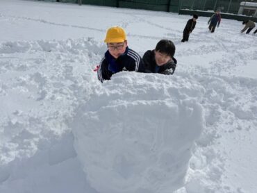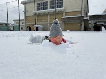 雪に包まれた校庭で、雪国ならではの雪遊びを楽しみました。寒さを感じさせないほど元気いっぱいに活動し、仲間と工夫しながら楽しむ姿が印象的でした。