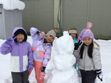 先週から降り続いた雪。生活科の学習「冬を楽しもう」では、雪だるまをつくったり、雪合戦をしたりして冬を楽しんでいました。