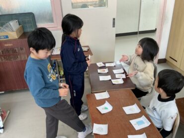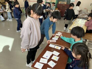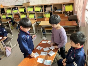2026.1.30 1/30 1年生「ものの名前を集めておみせやさんごっこ」 ものには1つ1つ名前がついていて、それらをまとめてつけた名前もあります。今日は、集めた名前を使っておみせやさんごっこをしました。「〇〇はありますか。」「〇〇を一つください。」といった売り買いで使われる基本の言葉を使って学習しました。
