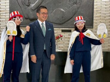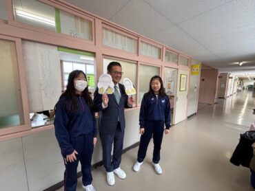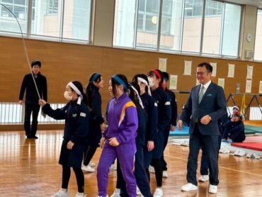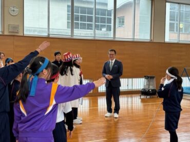 2026.2.8 2/5 出町高岡市長 高岡西部小を訪問! ~子供たちと笑顔の交流~ 出町高岡市長が高岡西部小を訪問されました。第12代の開校マンがお出迎え。子供たちと一緒に大縄跳びに挑戦。大きな拍手と歓声があがりました。また、子供たちが作成した似顔絵うちわをプレゼントしました。その後は、数名の子供たちとの対話の時間に。一人一人の思いを受け止めてくださる温かいお姿に子供たちも大喜びでした。出町市長との触れ合いは、みんなにとって心に残る貴重な時間となりました。