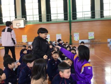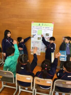 2026.2.12 1年生 2年生 2/12 1年生&2年生 【生活科】まちのすてきをしょうかいしよう 2年生は、生活科で取り組んだ町探検をもとに、校区にあるお店のすてきや地域の方の魅力を1年生に紹介しました。先日の学習参観での発表を経て「レベルアップした発表をしよう!」と気持ちを高めて取り組みました。1年生は、2年生の発表を聞いて来年度の学習にワクワクしていました。