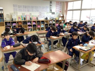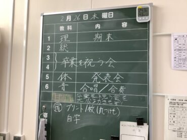 卒業を祝う会が終わった後、校長先生からたくさん褒めてもらいました。振り返りも、真剣に書いていました。