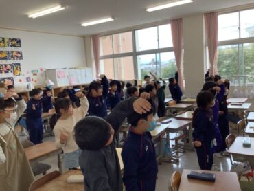 2026.3.7 3/6 2年生 外国語体験 2年生は、初めて外国語の授業の体験をしました。ALTのカーシー先生と一緒にアルファベットの発音や字形について学習しました。とても楽しい時間でした。来年度から始まる外国語の授業を楽しみにしています。